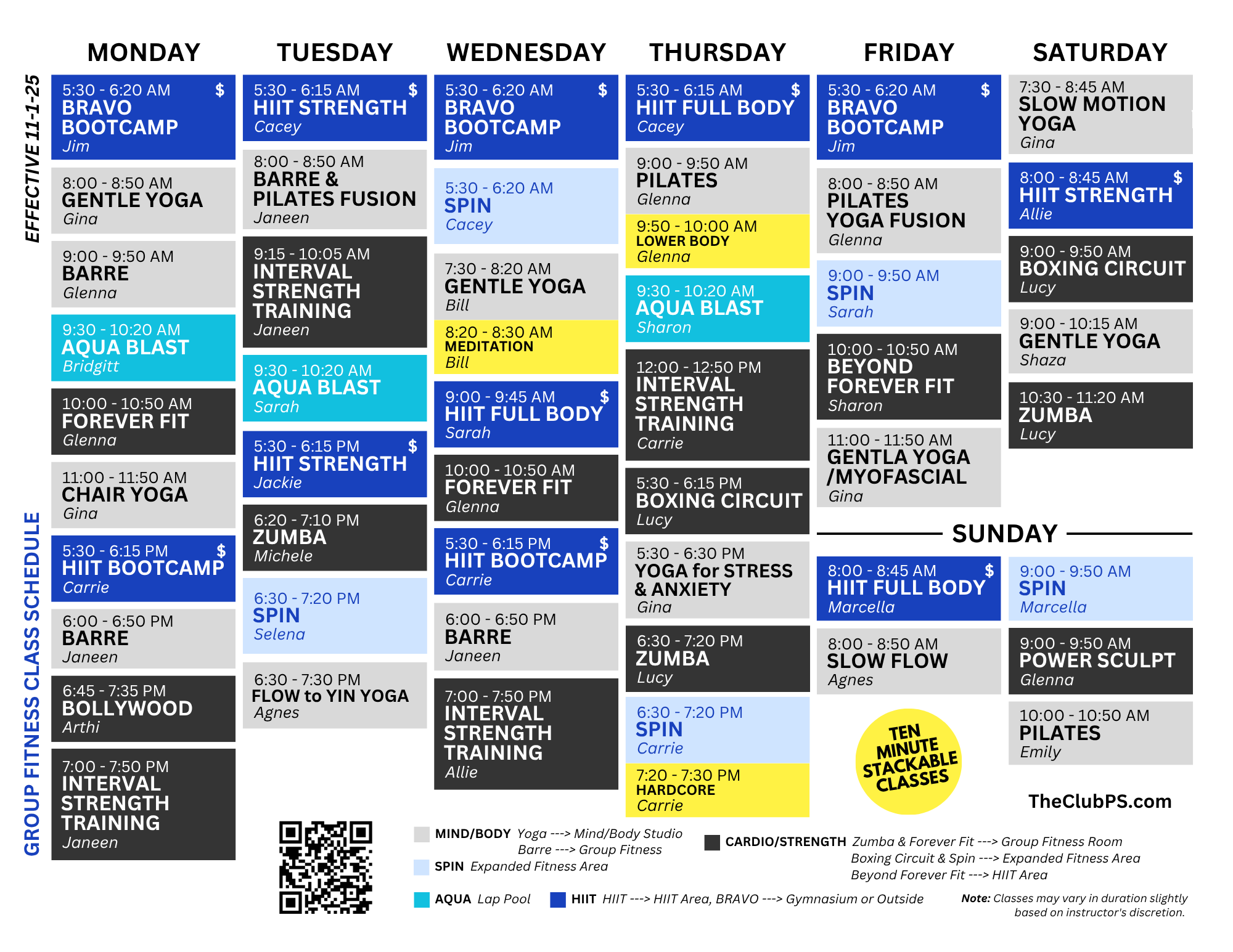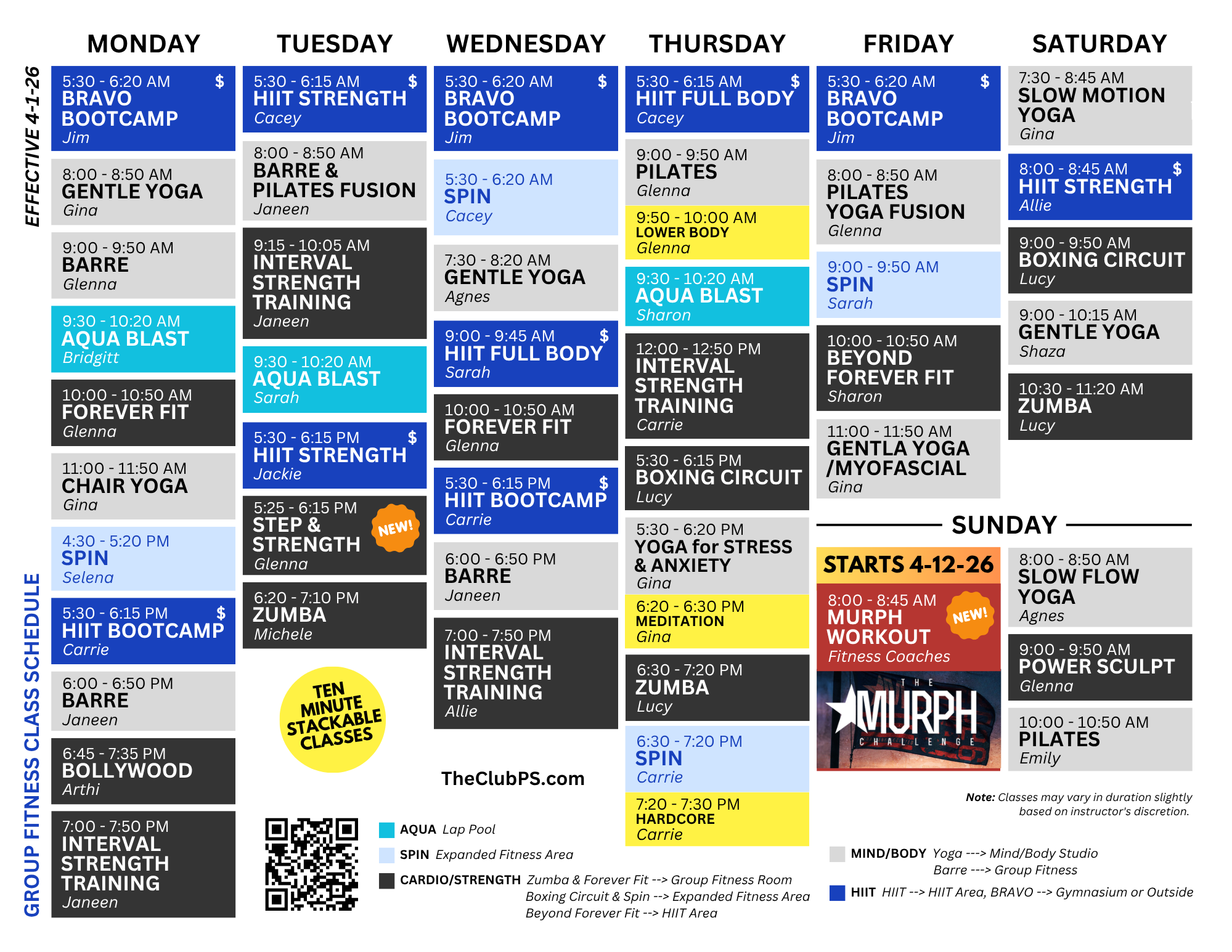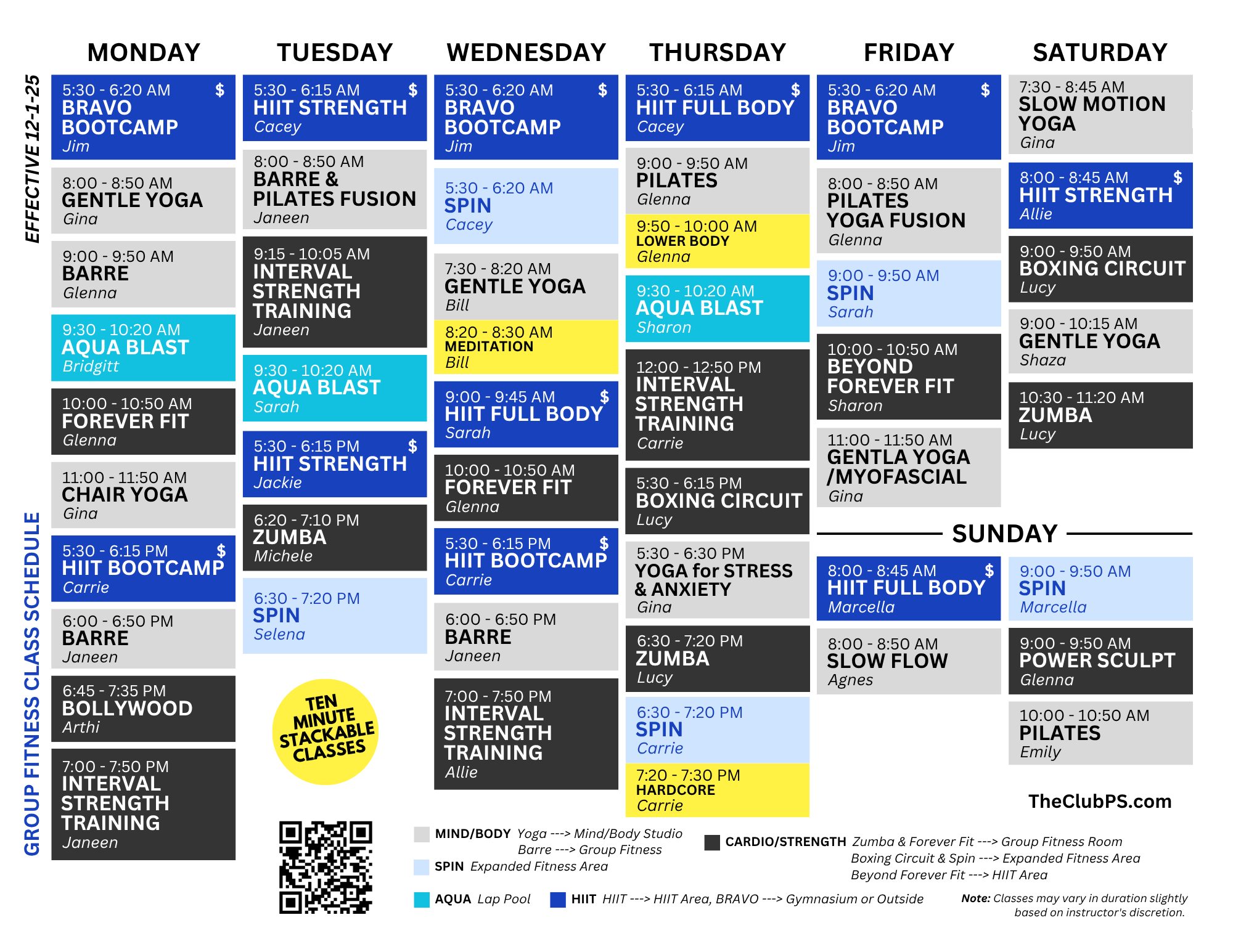 Experience over 40 group fitness classes per week, (Aqua, Cardio & Strength, Mind & Body, and Spin), all included with your membership.